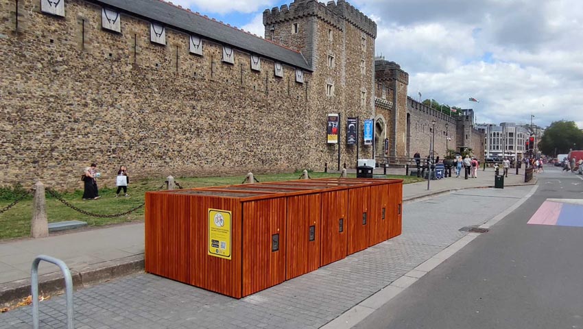 Secure cycle lockers are situated around the city, all you have to do is download the SpokeSafe App, create an account and select Cardiff as your location and find a space.  Daily prices start from £1.50 with weekly prices costing £7.50 and Monthly locker prices at £20. More information here.