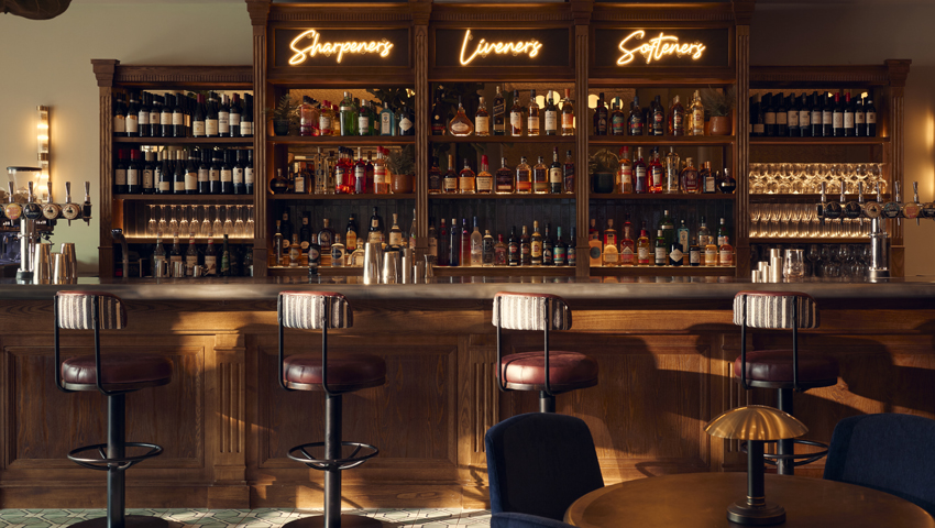 It is split over two separate floors, with a different vibe on each level. Guests are welcomed into the dog-friendly ground floor, with its own bar – offering early morning coffee, work-from-space and post-shopping lounging. As the day progresses, the atmosphere gets livelier, the drinks flow and guests settle in for the night.